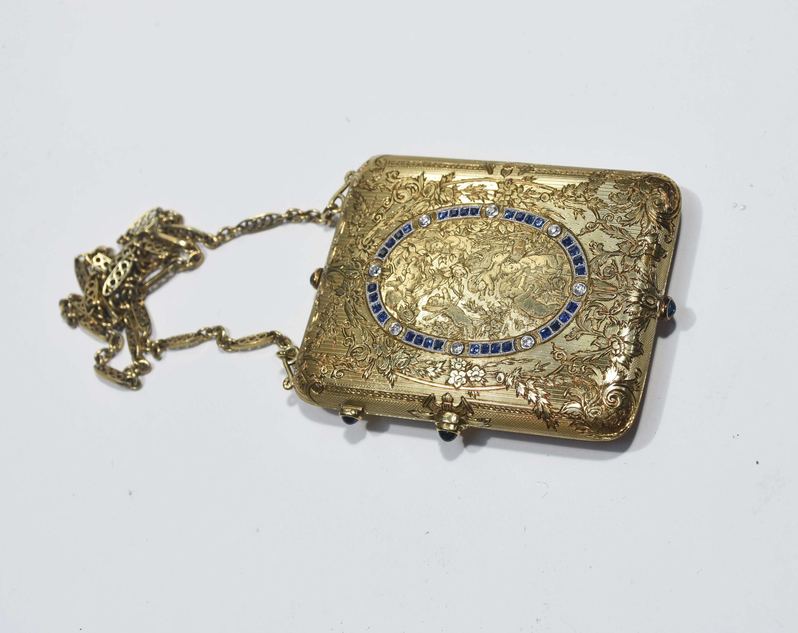 Fine 14K yellow gold, sapphire, and diamond minaudiere