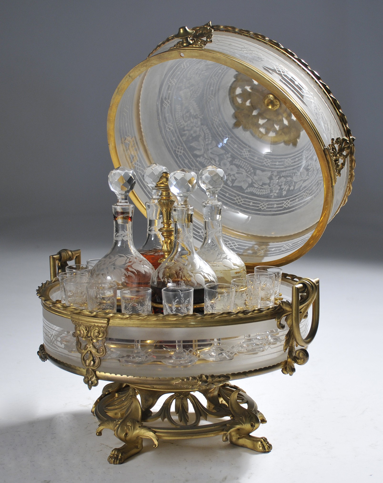 Fine 19th C. French dore gilt bronze tantalus, with original bottles